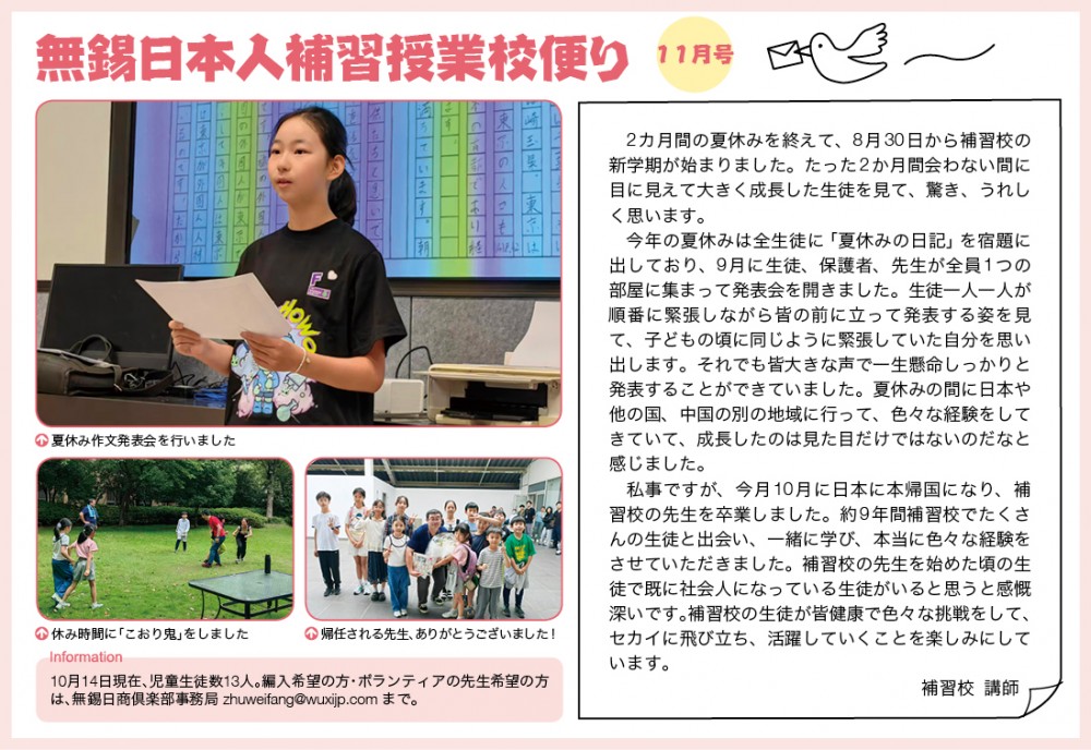 むしゃく日本人補習授業校便り 2025年11月号